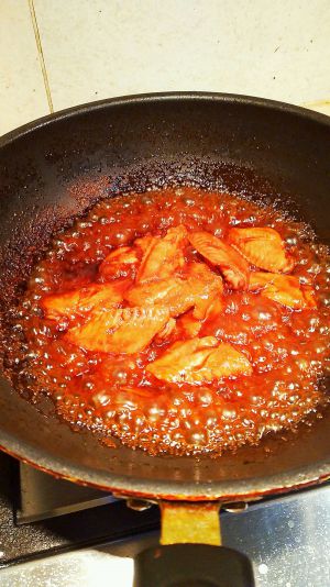 倒入300毫升可乐和适量的酱油生抽。多少由个人口味来定。中火煮至汤汁粘稠(也就是大厨所说的收汁)煮的时候需盖上锅盖焖。