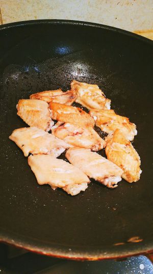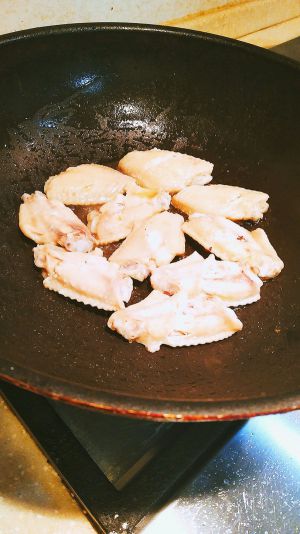 锅中放入油,将鸡翅两面煎至金黄