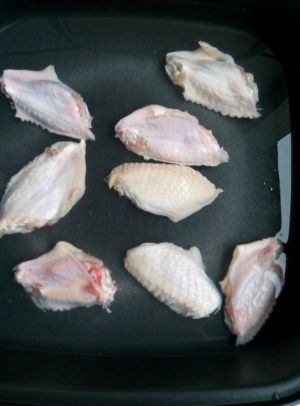 1,首先将鸡翅洗干净,热水焯一下,用盐酱油腌制(20分钟)