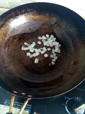 冰糖炒糖色,一定是小火啊,不然发苦了就不好咯,慢慢融化掉,看到有金黄色的泡泡就好咯~