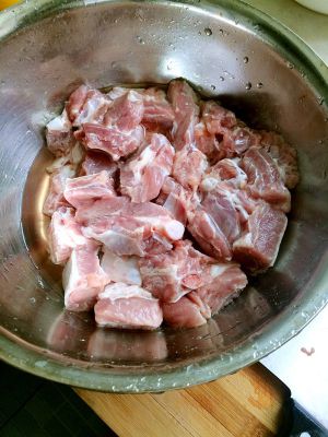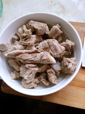 肋排斩块,不要太大哦,小一点容易进味,洗净血水,备用