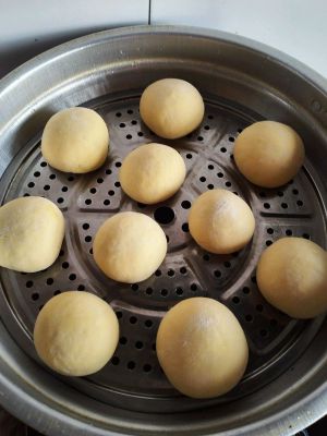 把每个小剂子继续揉面排气,然后做成馒头形状。冷水下锅蒸。可以刷点油,不粘锅。
