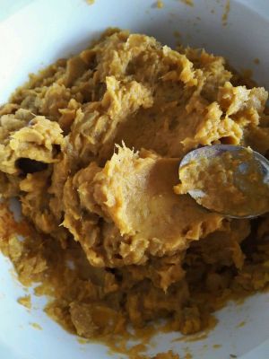 将煮熟的红薯去皮用勺子捻成泥状备用。
