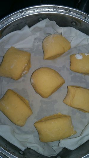 大约二十分钟馒头再次发酵好便开好水后放到笼屉上开始蒸。