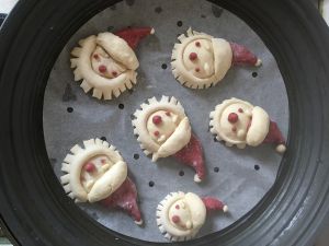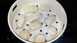 然后把小方块放到这种蒸笼,蒸的时候要分开点距离,大火二十分钟足够。