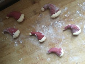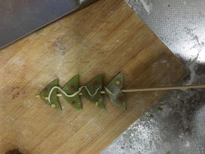 把面球揉成一条然后切成小方块,如果会粘的话可以稍微撒点面粉。