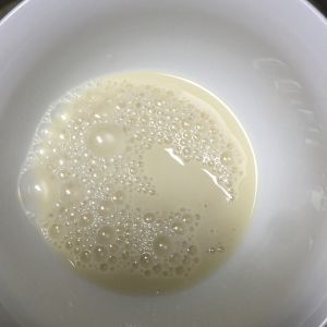 牛奶稍稍加热(比体温略高一些即可) 然后加入发酵粉 将发酵粉溶解