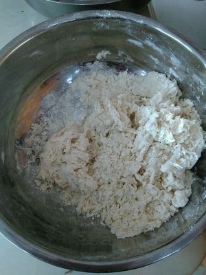 混合的水分次加入面粉了,用筷子搅拌成全絮状。