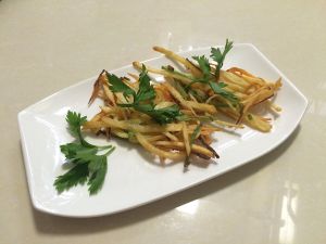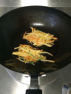 油锅放油炸,炸至金黄色,不停翻面炸我用的是150克差不多大的土豆