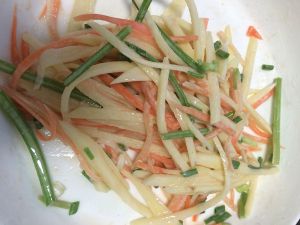 加入天罗粉和面粉,如果土豆不多加的粉量要少点