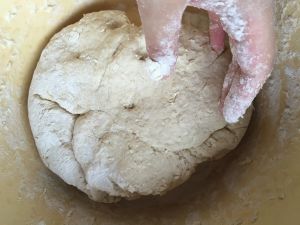 用温水泡开发酵母,倒入面粉和燕麦和牛奶,开始和面。我和了大概有15分钟