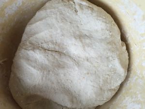 揉面揉面了,揉10分钟,表面光滑,我这个是实验的时候图片,不光滑将就着用,盖上保鲜膜发酵一个半小时的样子,2倍大,记住千万不要发过头,不然就是酸的不好吃