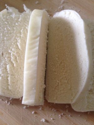 再将面团揉光滑。揉好的面要做到“三光“,就是面团光滑,面盆光滑,揉面的手是光的。揉好的面团很柔软,柔软程度和我们的耳垂差不多。