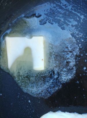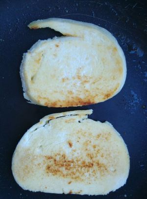 用黄油煎的馒头片,比植物油煎的香脆。如果有多士炉就更方便啦