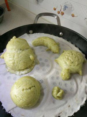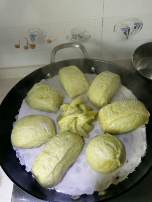 拍照忘记了,和二个面团,白面加酵母,牛奶,糖,少量碱温水和好盖湿步,南瓜加白面酵母和好,