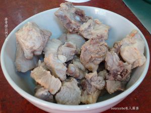 放入排骨红烧酱;PS:放入红烧酱需要焖15--20分钟;