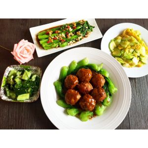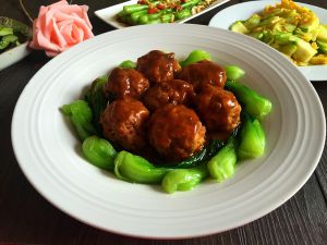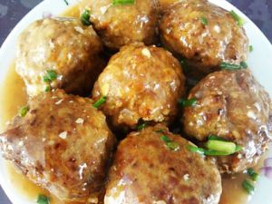 锅中少量油,加入煲内剩余的汤汁和适量水淀粉勾芡,淋在狮子头上面即可。