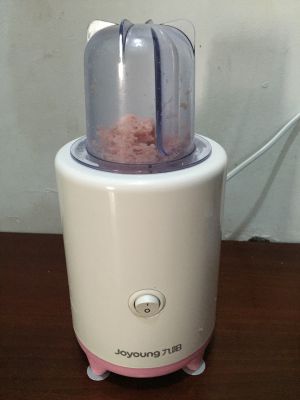 猪肉切成小块放入九阳料理机干磨杯中搅成肉馅,荸荠末,葱姜切末备用