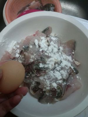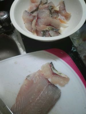 鱼洗净血水,将鱼骨鱼头鱼尾剔出,多洗几遍,加盐,胡椒粉腌20分钟