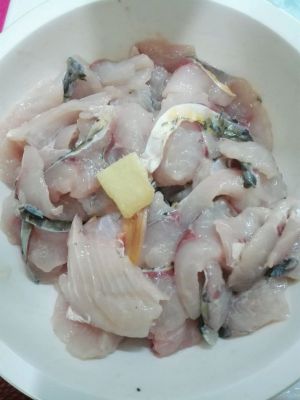 鱼片也用生姜、料酒、盐、胡椒粉腌制20分钟