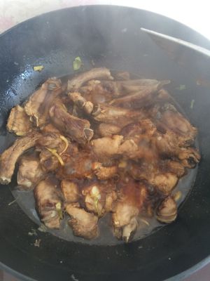 加入少许料酒,适量酱油和糖,再加入清水没过排骨,大火烧开后转小火,炖至入味