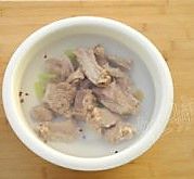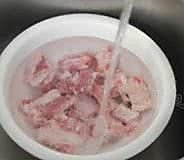 凉水下入排骨,加入花椒,再放入一半葱姜。开火煮排骨,一方面将排骨中的血水浸出来,另一方面可起到去腥解腻的作用。 大火将水烧开,煮至排骨变色。排骨放凉水中过一下,不仅肉质紧实而且口感更嫩,放凉之后也不会老。用凉水浸泡可使排骨肉质变紧,起到给排骨塑形的作用,代替油炸,更清爽健康。