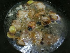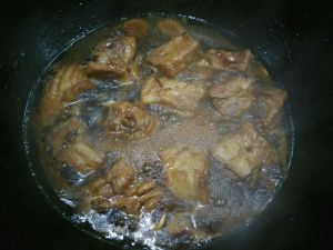 倒入适量烧开的水要沫过排骨,然后倒上酱油和老抽转小火炖40-50分钟。