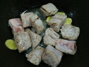 热锅热油,放入葱姜爆香加入排骨翻炒至表面微黄