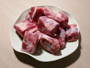排骨用清水反复冲洗,洗净表面的油和血水。 用水果的甜味代替白糖。将苹果洗净,去皮去核,切丁。