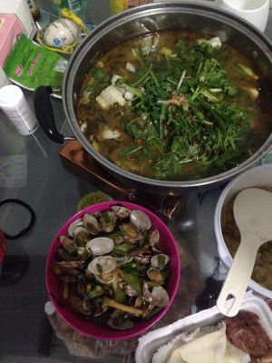 换锅,把酸菜鱼调料包里面的酱和咸菜炒香,再把鱼头和汤到回去一起滚,差不多了,下腌好的鱼片,腌鱼料调味包里有,一分钟就可以出锅,鱼片比较快熟