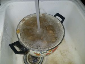 加水,大火炖。水开以后倒味达美,转成小火慢炖。