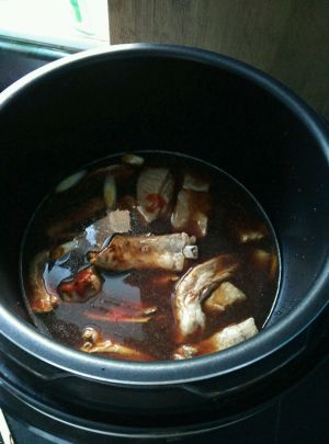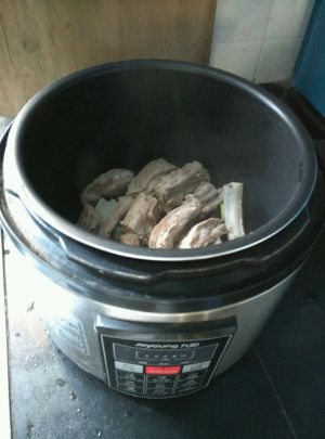 压力锅里放入醋,生抽,老抽,红糖,番茄酱,水,压力锅调到排骨档就可以开始了。自己该干嘛干嘛,不用管它了!