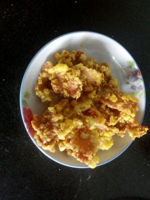这个是沾完稀得鲜酥炸粉后,又沾了一遍干的鲜酥炸粉后,出锅图