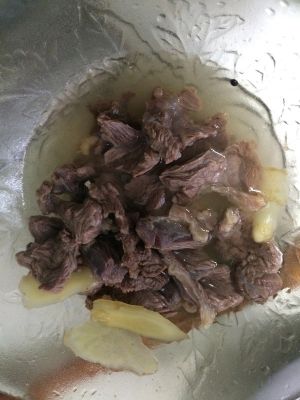 买了大概7、8两的牛肉,后来觉得太多了,只用了一半的牛肉。炖的话选牛腩会好吃些,洗净焯水后放入生姜片和少许花椒用高压锅压15-20分钟(上气之后开始算时间)。