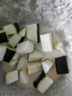 面粉和水搅拌,不要太稀,保证能包裹住茄子一层。