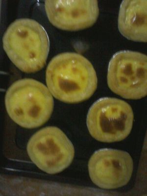 将蛋挞放入预热好的烤箱里(我都是用200度预热)175度上下火,中层烤制25分钟