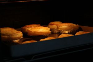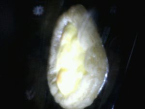 25分钟后蛋挞虽然烤好,但是并没有出现虎皮,然后将蛋挞从中层转到上层,200度再烤制5分钟