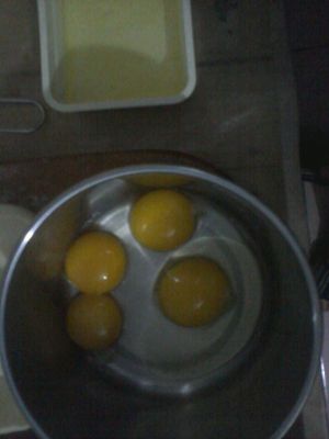 将鸡蛋黄,牛奶,白砂糖搅拌均匀备用
