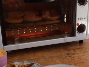 我的烤箱没有温度,只有上烤和下烤,同时上下烤,3个功能。我先下烤15分,上烤5分,最后一起烤3分钟