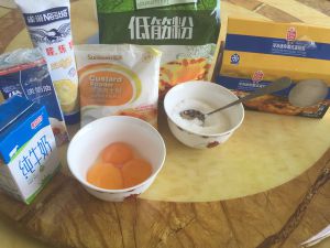 低筋粉,过筛,吉士粉(会使蛋挞更成型)