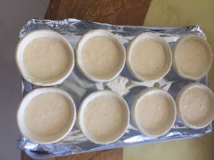 塔水加入蛋挞皮里,七分满,入预热好的烤箱200度20分钟