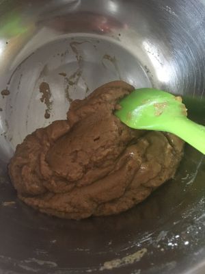 混合除了巧克力外所有材料,揉成团。不用担心面粉起筋,里面几乎没水分,起不了筋。