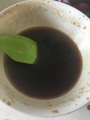 1。红糖和水混合,要用温水哦!如果红糖有颗粒,记得用勺子压碎!!