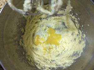 黄油软化后加入糖,用打蛋器打至蓬松
