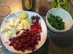 姜 葱 泡姜 泡红辣椒 蒜 切段备用