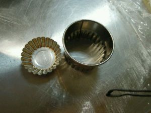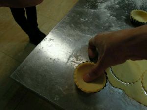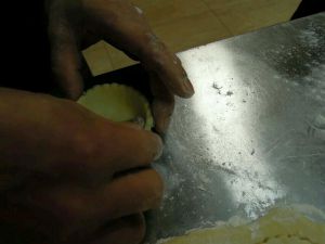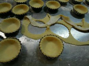 将冷藏好的挞皮取出 分段 每一个搓成一个小球然后在手心将其压扁 接着上挞模 注意底部和外圈最好能一样厚薄便于脱模