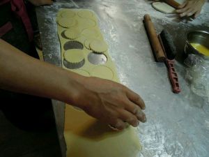 双手交叉——用掌心压中间跟四周——让水皮和酥心密合