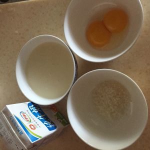 第二步制作蛋挞液、牛奶、细砂糖、鸡蛋,依次放入无水无油的盆中,搅拌均匀即可、在依次倒入蛋挞皮中