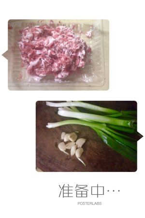 羊肉化冻后,倒白酒,少量盐,淀粉腌制半小时。蒜子需要处理成蒜泥,大葱斜刀切葱段