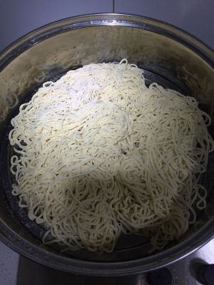 这个时候开始蒸面条,放入蒸锅,蒸上十分钟左右。